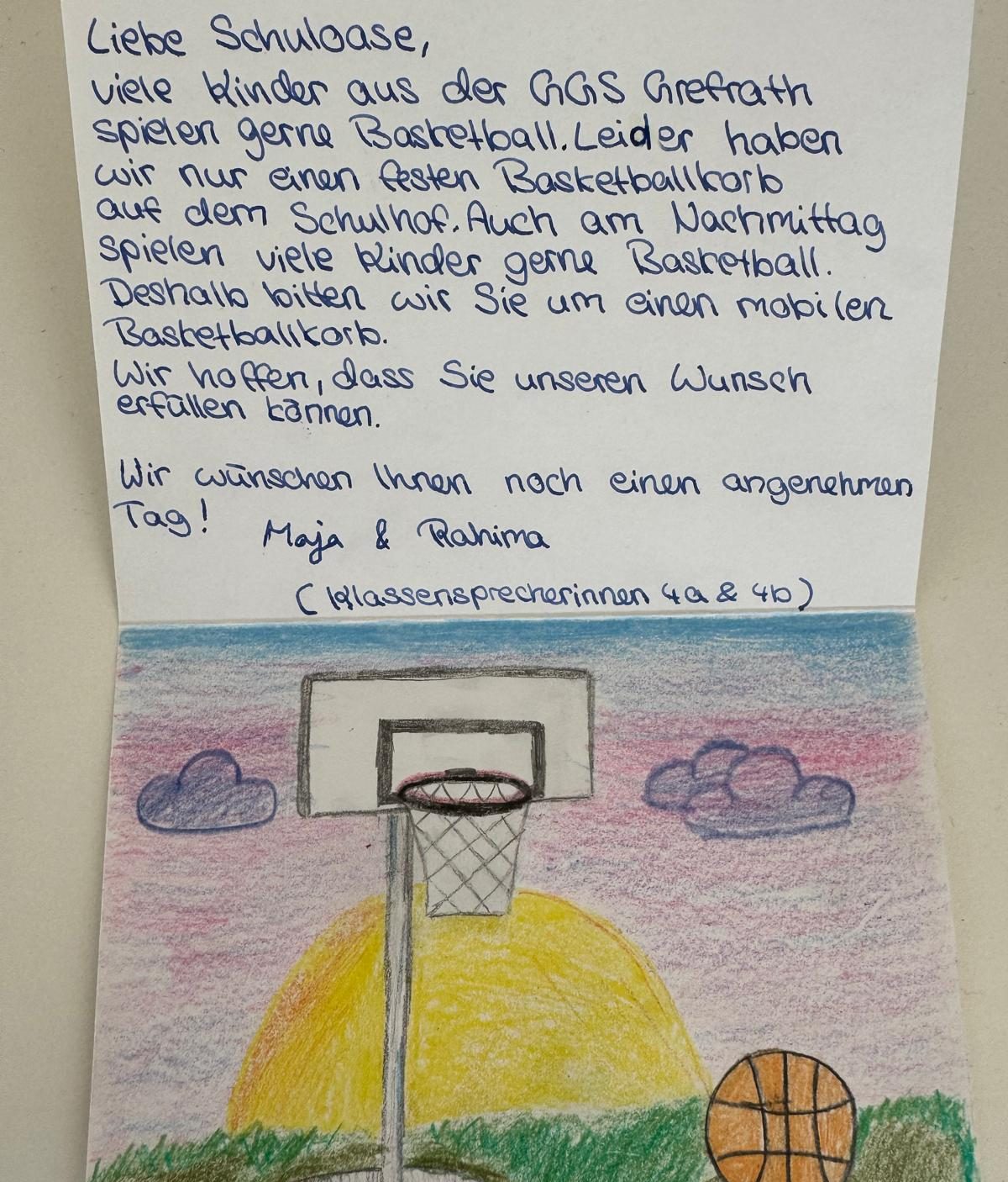 Das Kinderparlament hat einen Brief geschrieben - und die Schuloase hat gleich 2 Basketballkörbe spendiert. DANKE!